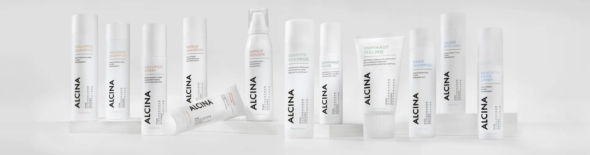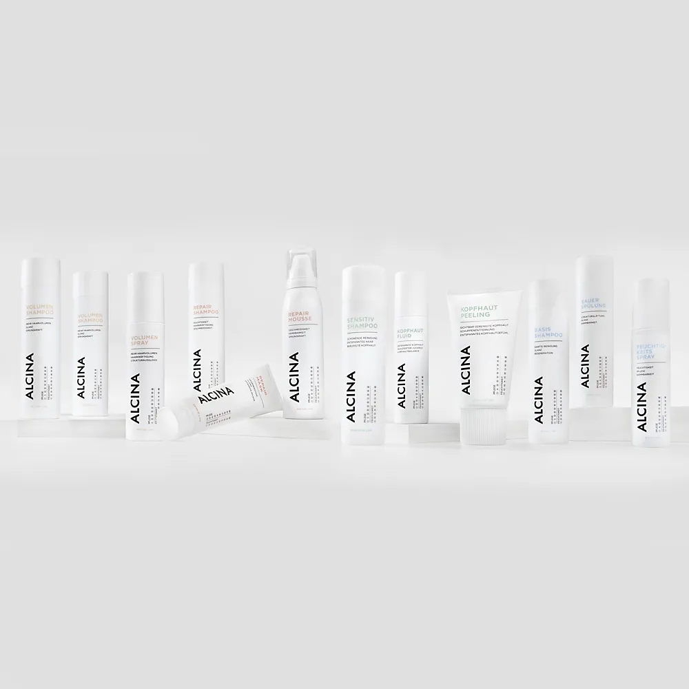 Mit der Alcina Sensitive Line gehören Schuppen, Juckreiz, Rötungen, sensible und trockene Kopfhaut der Vergangenheit an. Die Kopfhaut wird gereinigt und beruhigt. Die Schutzschicht auf dem Kopf kommt wieder in die natürliche Balance. Die Produktlinie umfasst Sensitiv-Shampoo, Kopfhaut-Balsam, Kopfhaut-Peeling und Kopfhaut-Fluid.