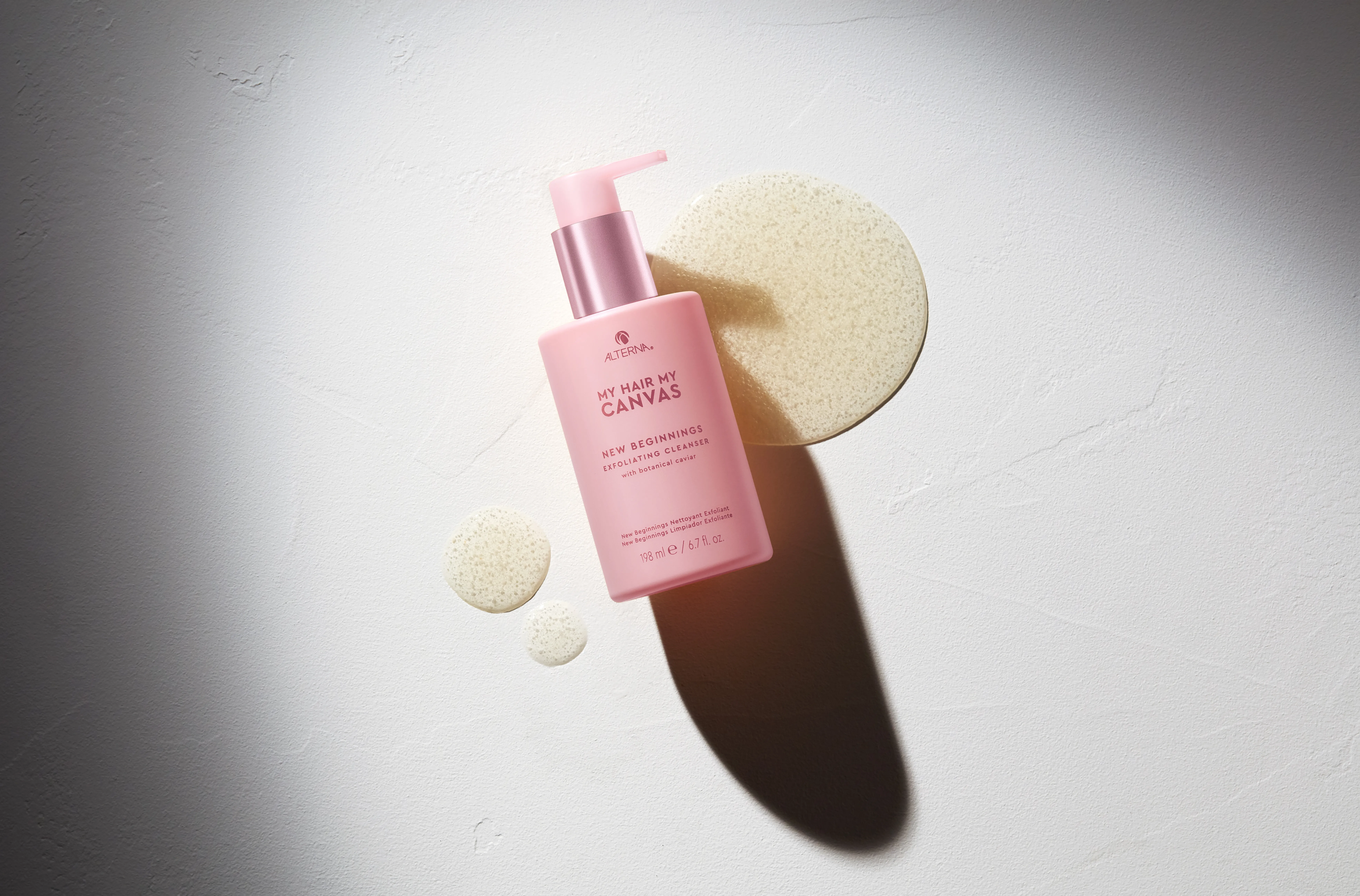 Alterna New Beginnings Exfoliating Cleanser ist ein zentrales Produkt der Linie. Es ist ein mildes Shampoo, das Ablagerungen im Haar entfernt. Dazu gesellen sich weitere vegane Alterna Shampoos, Conditioner, Haarmasken und Stylingprodukte.
