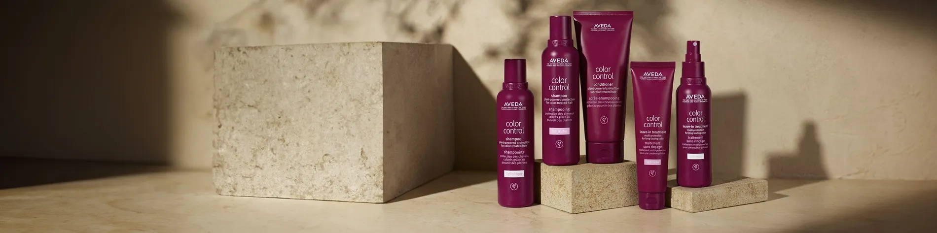 Aveda Color Control verwöhnt coloriertes Haar mit auserlesenen, pflanzlichen Inhaltsstoffen, die zu 94% natürlichen Ursprunges sind. Wie alle Aveda Produkte werden sie mit Wind- und Solarenergie produziert und machen sich die Kraft der Natur zu Nutze: Botanische Reiniger sorgen für ein langanhaltendes, strahlendes Farbergebnis bei jeder Haarwäsche. Natürlich gewonnene „Magnete“ neutralisieren Partikel, die die Haarfarbe beeinträchtigen können.