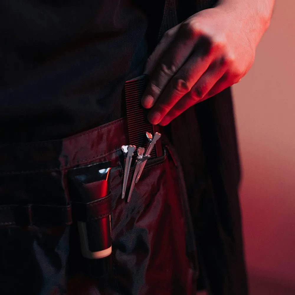 Manche Stylisten bevorzugen kompakte Taschen mit nur wenigen Laschen, welche sich auf Wesentliche konzentrieren, andere wiederum haben gerne mehr Werkzeug direkt griffbereit und wählen daher eine Bauch- oder Schürzentasche mit vielen Einsteckfächern, Laschen und Zippfächern.
