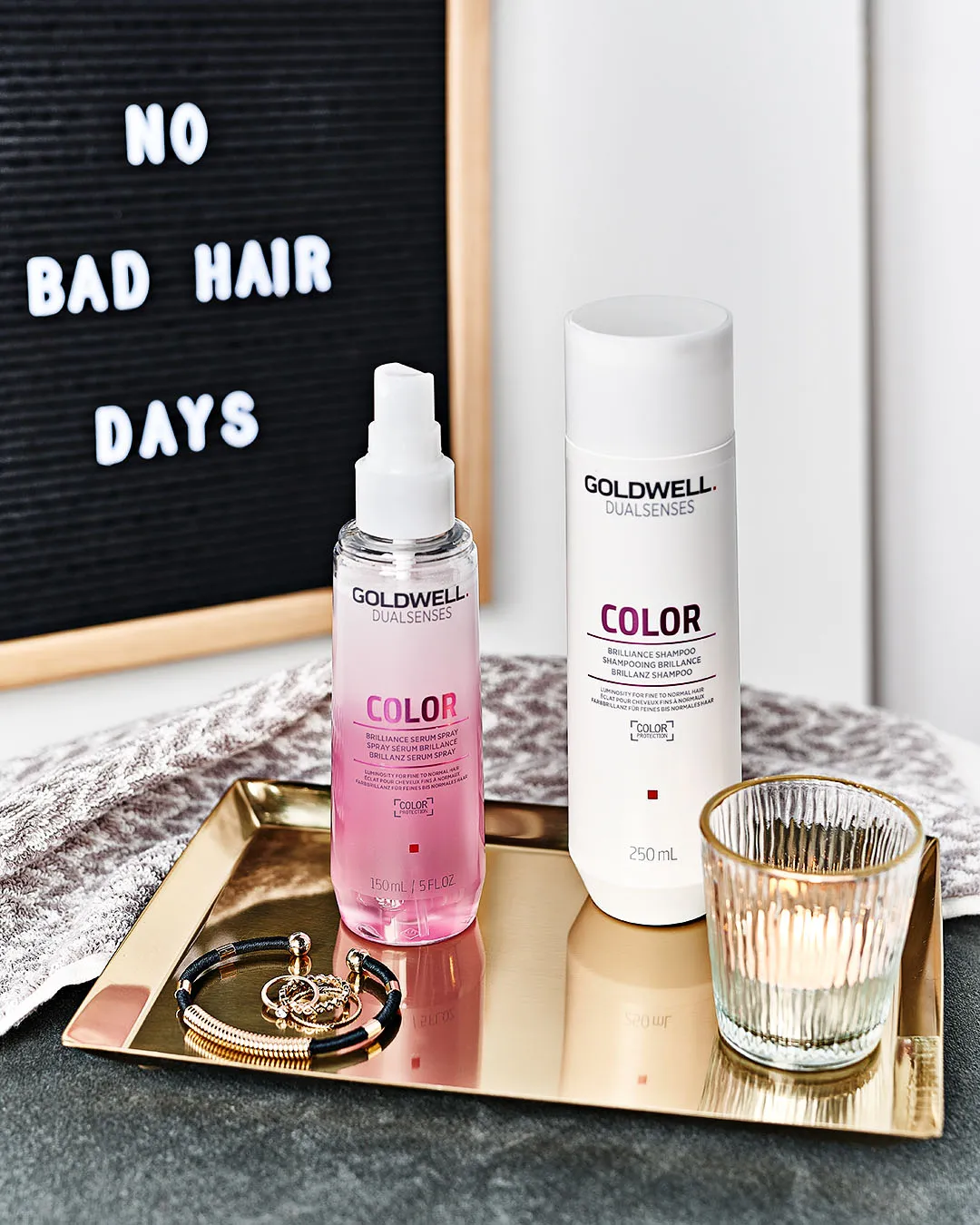 Um coloriertes Haar bestmöglich vor Farbverblassung zu schützen, gibt es Goldwell Dualsenses Color Shampoo, Conditioner, Haarkur und Serum Spray zu einem günstigen Preis im Set zu kaufen.