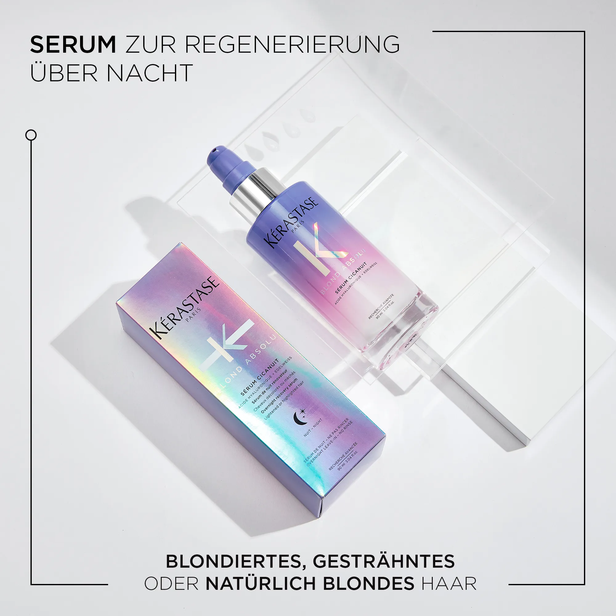 - Kérastase Blond Absolu Sérum Cicanuit: Du gibst es über Nacht in das Haar, ohne es auszuwaschen, wenn du Spliss und Haarbruch verhindern willst.