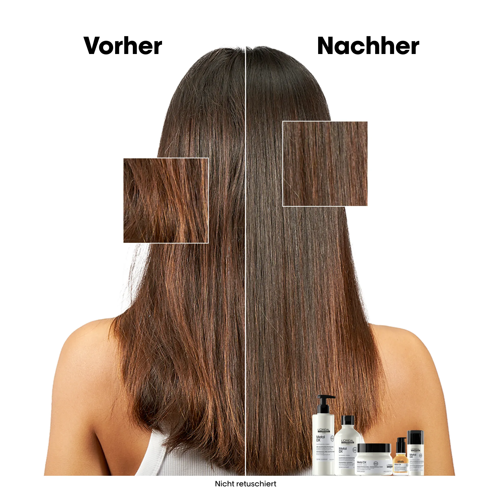 L'Oréal Metal DX sorgt für gestärktes Haar und langanhaltende Farben. Es entfernt außerdem Metallrückstände im Haar, die zu unzuverlässigen Farbergebnissen führen können.