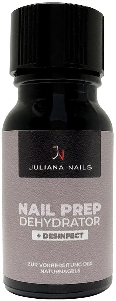 Mit Juliana Nails Nail Prep Dehydrator werden die Nägel optimal auf die Modellage mit Gel Lack, Gel, Acrylgel und Acryl oder auf das Auftragen von einfachem Nagellack, Primer oder Haftgel vorbereitet. Die Naturnägel werden desinfiziert, entfettet und von unnötiger Feuchtigkeit befreit. Juliana Nails Nail Prep Dehydrator ist auch für Problemnägel geeignet.