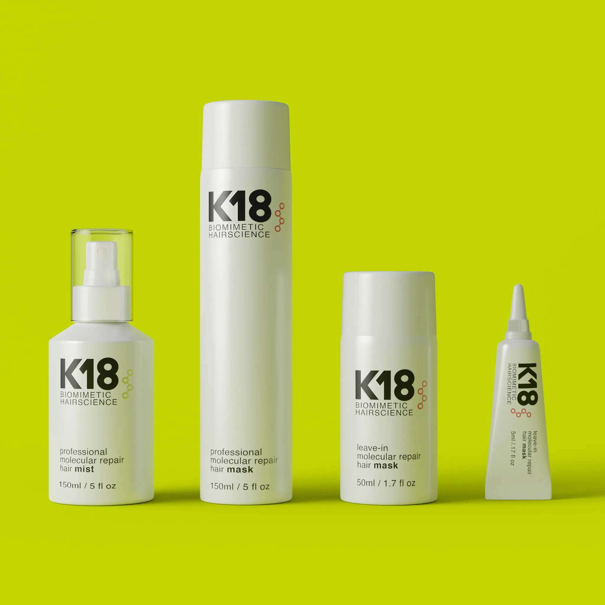 Haarschäden sind ein Problem, mit dem fast jeder schon einmal zu kämpfen hatte. K18 ist das erste Produkt, das die Biomimetik nutzt, um Keratinketten wieder zu verbinden, die durch Bleichen, Färben und chemische Behandlungen unterbrochen wurden. Es sorgt für geschmeidige, glattes und kräftiges Haar mit Sprungkraft, das sich wie neu anfühlt. Je stärker das Haar geschädigt ist, desto überzeugender sind die Ergebnisse. Das K18 System ist sowohl von Stylisten im Salon, als auch von dir zu Hause einsetzbar.