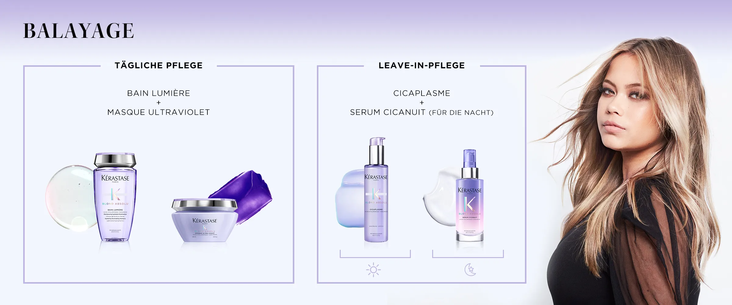 - Balayage - Bain Lumiere, Ultraviolett-Maske, Leave-In-Pflege und Sérum Cicanuit