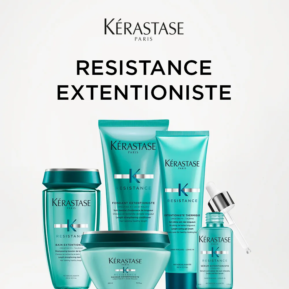 Jede Frau hat ihre persönliche, ideale Haarlänge. Von vielen wird diese jedoch nicht erreicht, da das Haar zuvor abbricht. Je länger das Haar wird, desto sensibilisierter und brüchiger sind die Haarlängen. Mit Kérastase Résistance Extentioniste werden Ihre Haare endlich länger.