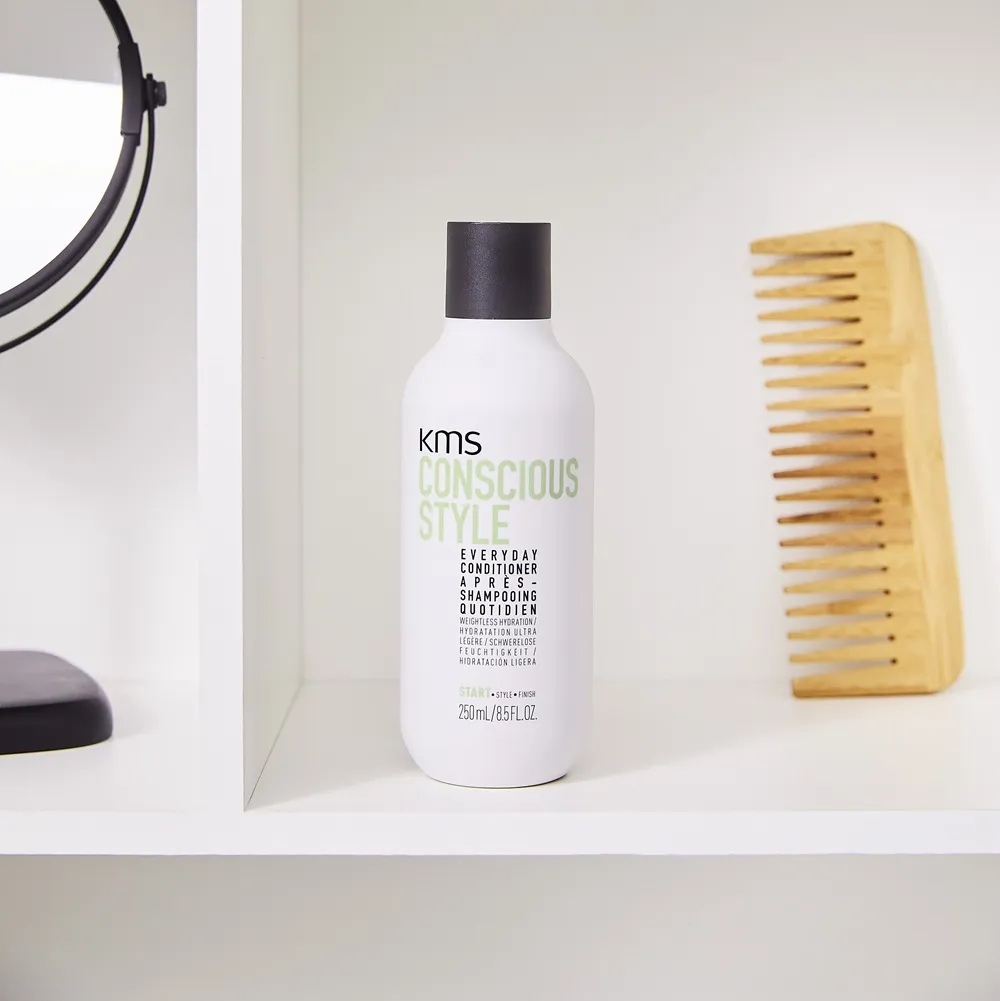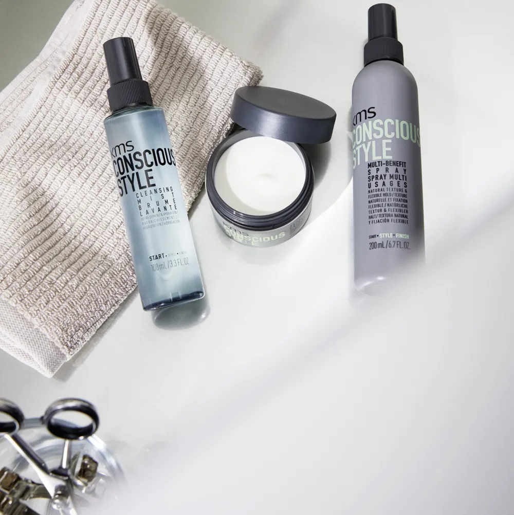 Ein bewusster Lebensstil erfordert bewusste Entscheidungen. Mit der neuen KMS Conscious Style Produktlinie gelingt das bestimmt. Sie umfasst Every Day Shampoo, Every Day Conditioner, Styling Putty und Multi-Benefit Spray. Durch die Verwendung dieser Produkte entstehen minimale Auswirkungen auf den Planeten mit maximaler Leistung von Anfang bis Ende.