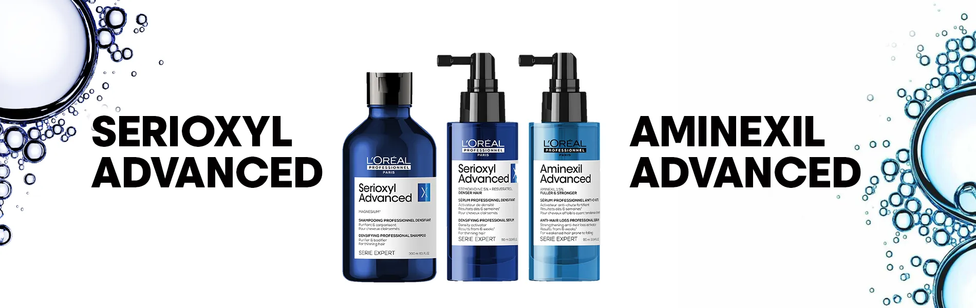 Die Serie umfasst zwei Seren für mehr Haarfülle, zwei Shampoos und ein coloriertes Spray, das für mehr Volumen und Kaschierung von lichten Stellen sorgt. In den Serioxyl Seren wird neben 5% Stemoxydine auch Resveratrol verwendet, welches ein Antioxidant ist. Dieses Antioxidantium mit höchster Wirkung potenziert die Wirkung von Stemoxydine und bekämpft oxidativen Stress auf der Kopfhaut.