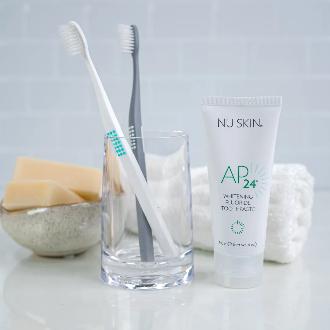 Nu Skin AP ist die familienfreundliche Zahnpflege Produktserie mit 2 verschiedenen Zahnpasten und einer professionellen Zahnbürste. Die Nu Skin Zahnpasten sind sanft zu Zahnfleisch und Zähnen, entfernen gründlich Plaque, hellen die Zähne auf und haben einen besonders köstlichen Geschmack aus Vanille-Minze.