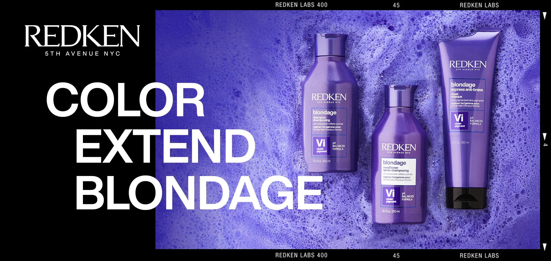 Redken Color Extend Blondage ist die professionelle Pflegeserie zur Gelbstich Neutralisierung für blondes Haar.
