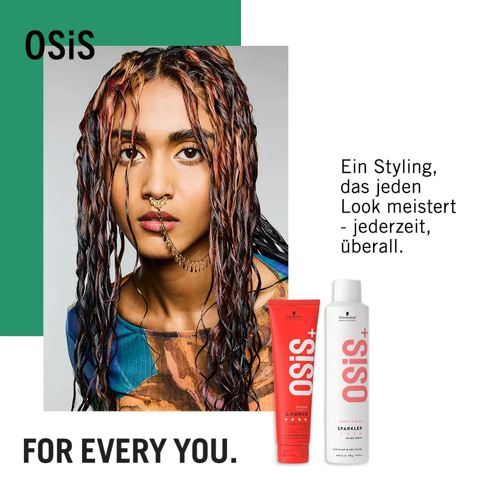 OSIS+ ist eine Stylingserie von Schwarzkopf, die es ermöglicht alle kreativen Möglichkeiten für die Haare auszureizen. Für jeden Haartyp und jeden Look ist bei der großen Auswahl an Styling-Produkten mit Sicherheit das Passende dabei. Schaffe unverwechselbare Signature-Styles mit OSIS+!