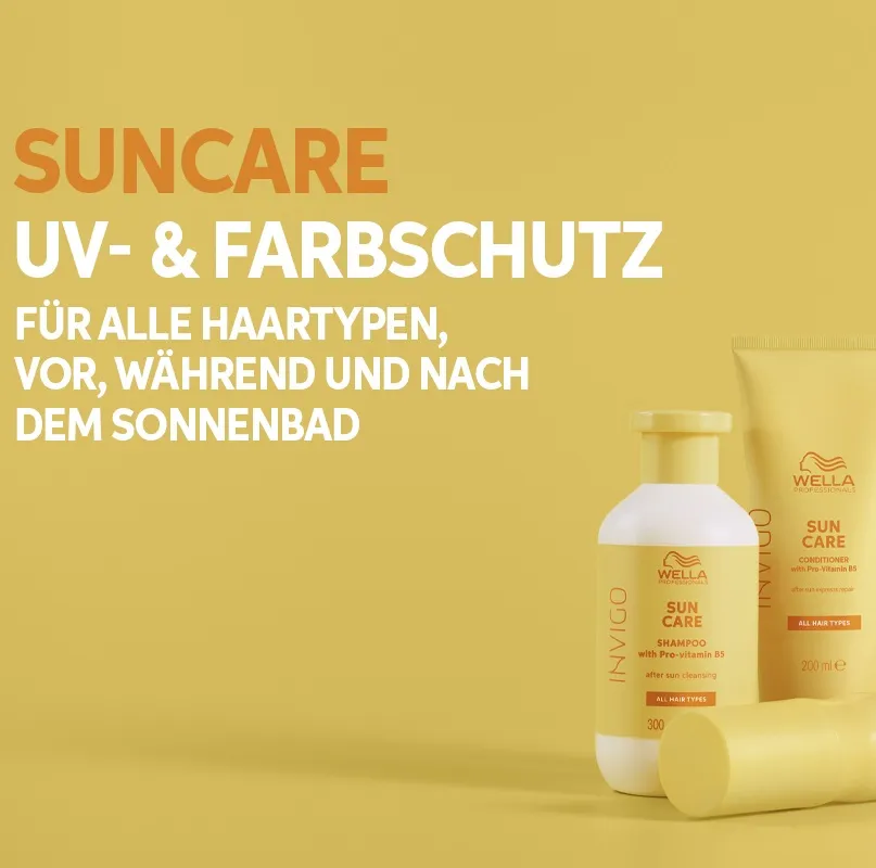Die Hochleistungs-Sonnenpflege von Wella bietet dem Haar somit ein optimales Pflegeprogramm für warme Sommertage. Die Produkte reinigen das Haar sanft und befreien es von Salzkristallen und Chlor. Das Haar wird vor schädlicher UV-Strahlung und Wind geschützt. Die Farbbrillanz bleibt erhalten, das Haar optimal mit Feuchtigkeit versorgt. Für rundum gesundes, strahlend schönes Haar.
